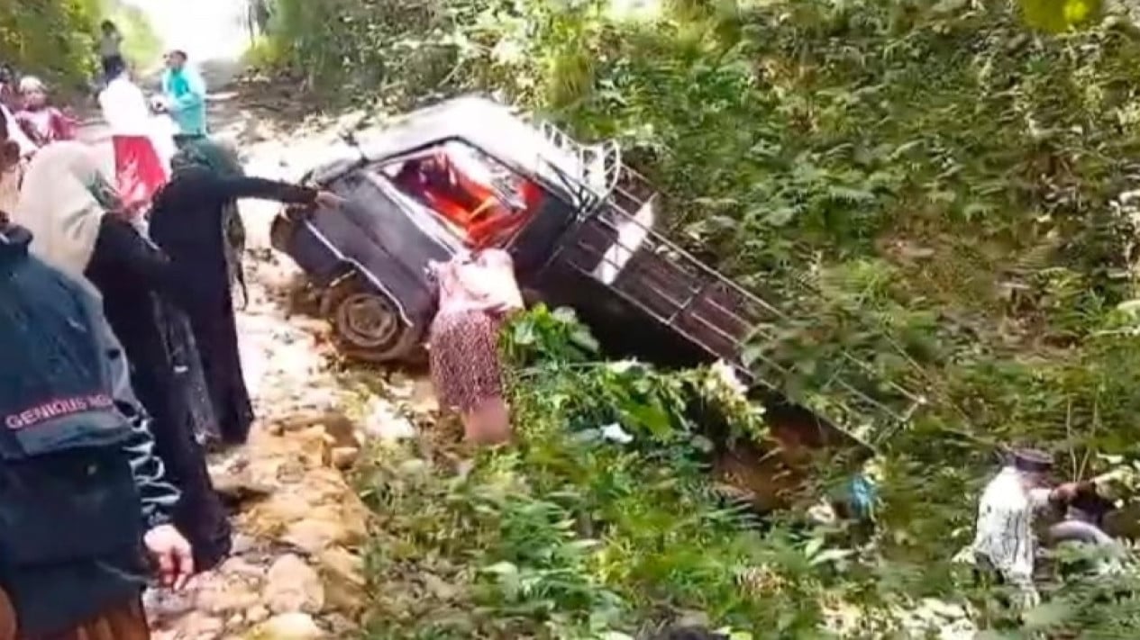 Proses evakuasi mobil pikap terperosok ke jurang di Bangkalan Madura