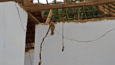 Retakan besar terlihat membelah dinding hingga lantai rumah warga. Sebagian bangunan bahkan terancam ambruk karena berdiri di atas tanah yang tidak stabil dan berada di dekat tebing.