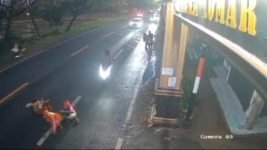 Saat motor yang ditumpangi tiga perempuan itu mulai memasuki badan jalan, tabrakan pun tak terhindarkan. Benturan keras membuat seluruh pengendara terpental. Sepeda motor yang dikendarai tiga emak-emak bahkan terseret hingga sekitar lima meter dari titik awal tabrakan, sementara para korban terjatuh dan berguling di aspal.